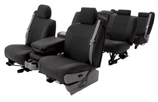 Coverking Custom Seat Covers protect the original upholstery from damage, cover up any existing damage, and provide a more personalized look to a vehicle interior. Coverking Custom Seat Covers are designed to fit perfectly. Because many seats have reclining, folding and removal features, Coverking Custom Seat Covers are designed to allow complete use of the seat features. Coverking always includes headrests, armrests, console covers for split bench seats, and map pockets. For many vehicles, Coverking offers Custom Seat Covers for the rear seats. Coverking Custom Seat Covers also have provisions for side airbags. Coverking insists on testing its materials, and offers a wide selection of colors and patterns.Leatherette Elegant and practical, Leatherette is a high-grade vinyl which is tough, easy to clean and install, yet has the look and feel of genuine leather. Available in several colors, Leatherette Custom Seat Covers will stand up to the abuse of kids and pets, then quickly clean up with a wet sponge and be ready for a night on the town. Make sure to read the vehicle application description carefully Any doubt of what you are ordering CALL Alltimeauto.com FIRST. 1-877-388-6552
