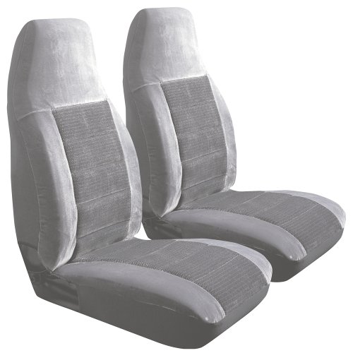 You are viewing Royal Velvet High & Low Back Bucket Seat Covers - Gray . The Royal Velvet High and Low Back Bucket Seat Covers are made with quilted elegance and are guaranteed to fit seat styles 303 and 404! Easy to read instructions for quick installation and added comfort! Perfect for covering worn seats, improving comfort, and protecting the car's upholstery! Sold as set of two seat covers. Fits these seats High Back Bucket Low Back Bucket (Covers seat & headrest) Comes in these colors # 21456-03 Blue # 21456-14Grey