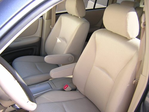 Complete Exact-fit Seat Cover Set for 04-07 Toyota Highlander Front Captain Chairs With One Armrest Per Seat Driver Power Seat Control NO Seat-mounted Side Airbags in a Buckskin Vinyl Leatherette.