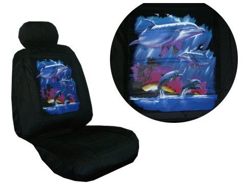 One pair of universal low back style seat covers that will fit standard low back bucket seats as pictured with the adjustible head rests. Also include are one pair of headrest covers. The stretchy polyester backside (the part you see from the rear of the seat) allows the covers to shape to different seat shapes and sizes. Will accomodate side impact seat airbags and inside armrests.