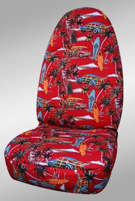 Hawaiian Print Seat Covers - 2 Front Universal Buckets - North Shore Red - Made In The USA